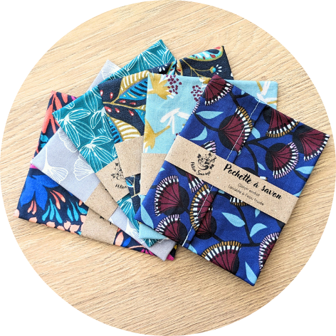Une jolie pochette en tissu imperméable et lavable, idéale pour transporter vos savons solides en voyage, à la salle de sport ou en week-end, tout en protégeant le reste de vos affaires.